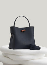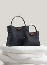 Gaia is our interpretation of the classic carryall with a modern twist, designed with a wooden centerpiece closure.
