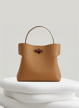 Gaia is our interpretation of the classic carryall with a modern twist, designed with a wooden centerpiece closure.