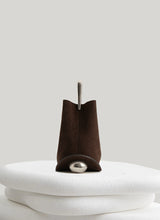 Our signature piece, the Iconic Ozzy Bag, is now in suede, inspired by the feminine silhouette and nature's shapes.