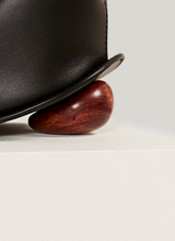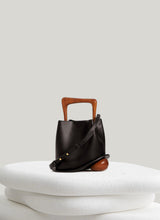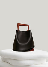 Crafted with smooth leather and wood. Includes a zipped inner pouch and an adjustable shoulder strap.