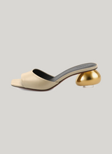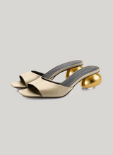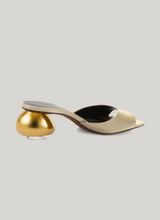 — Gold-toned sculptural heel